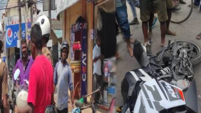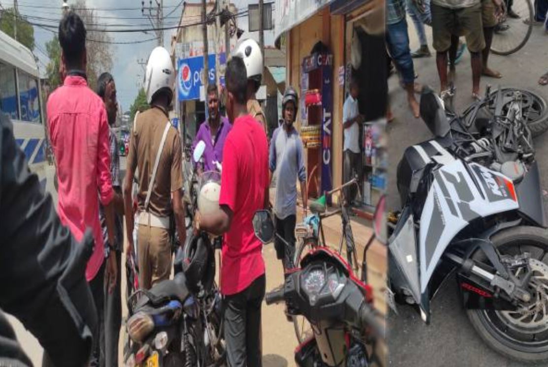 மோட்டார் சைக்கிளில் வேகமாக வந்த நபர் ஒருவர் அதனைக் கட்டுப்படுத்த முடியாமல் வயோதிபர் ஒருவரின் மேல் மோதி விபத்தை ஏற்படுத்தியுள்ளார்.