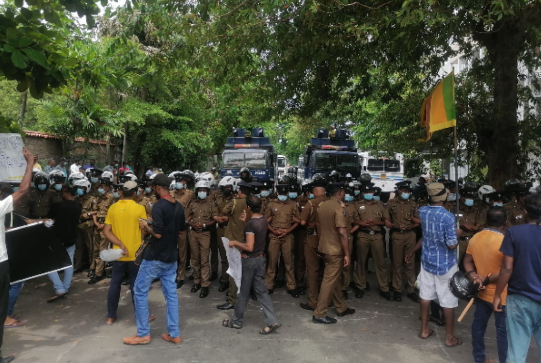 எனினும் அப்பகுதியில் பரீட்சை நிலையமொன்று இயங்கி வரும் நிலையில் அப்பகுதிக்குள் ஆர்ப்பாட்டக்காரர்களை அனுப்ப முடியாது என காவல்துறையினர் தெரிவித்துள்ளனர்.